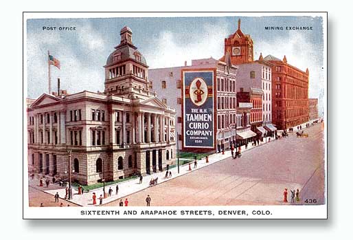It was in Denver where he made his fortune the best way he knew how. I started out, he would say, with a big rock and a brainstorm. To make a long story short, a patron who had just been expelled from a local house of forbidden pleasures came into Tammens bar fiddling with a chunk of Peacock Ore that he carried for luck. Tammen was interested in the rock and wanted to buy it. It turns out the man had a rather large chunk of it in his carpetbag. The only problem was that it was left behind at the Madames house and she wouldnt give it back to him. Tammen wanted the stone, so he took the man back to the house. After an attempt to ask politely for the bag, the door was slammed in their faces. Tammen then proceeded to set fire to the front porchand while everyone else was running out the back, they ran in and grabbed the bag. Tammen took the large chunk of ore, broke it into bits, and labeled each piece as a western souvenir. This was the beginning of his curio business. He purchased a museum space on Larimer Street in Denver, and soon his company grew to become one of the largest curio businesses in America.